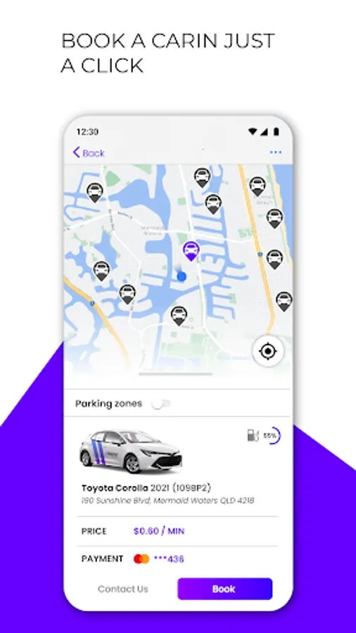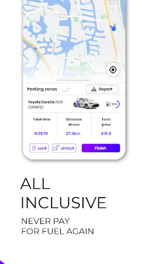 Use your phone to find a car on the map, and instantly book, inspect, unlock and start driving. Then, just return it in one of our zones.