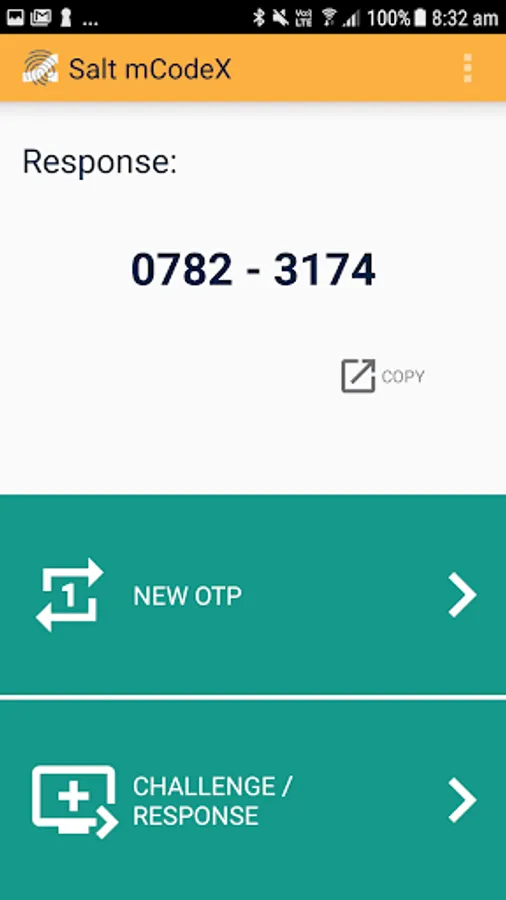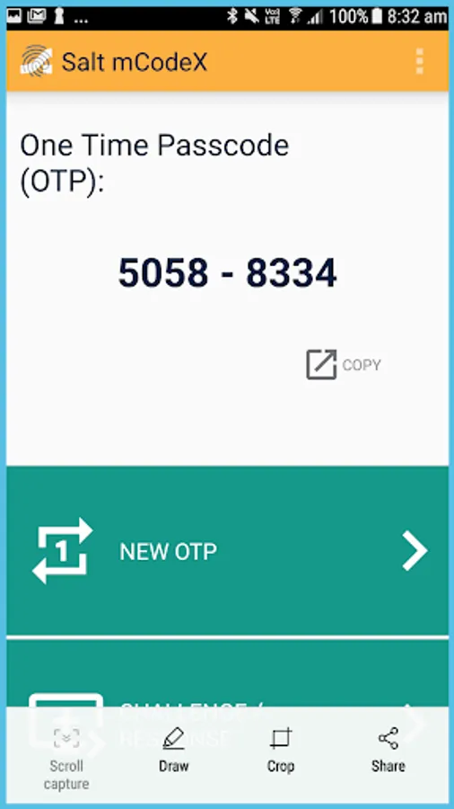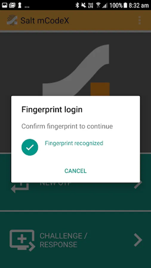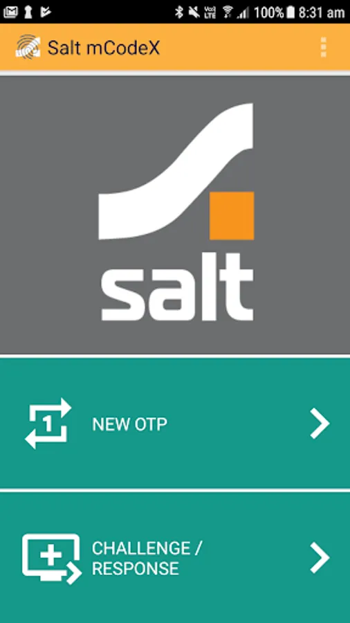 Salt mCodeX uses biometric authentication to generate One Time Passwords (OTP) and Challenge/Response signature codes that are displayed on the Android device.