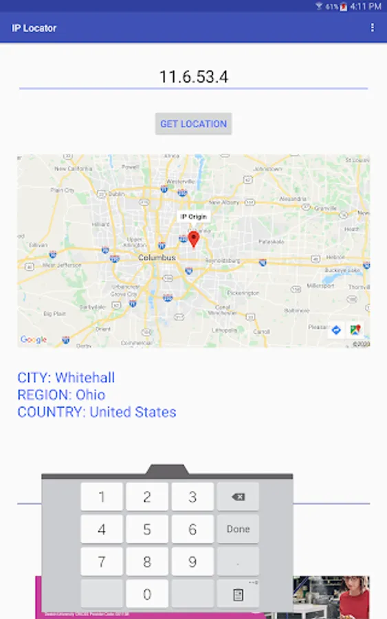 Get information about the physical location of an IPv4 address including the city and its approximate position on the map.