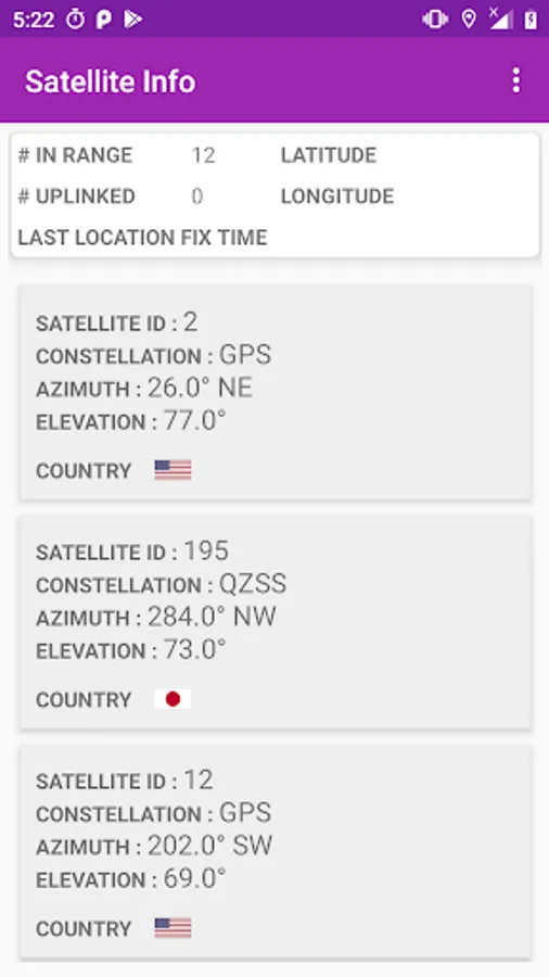 Ever looked up at the sky and wondered which satellites are tracking your movements? Use this handy app to get a list of GNSS satellites within range of your smart device and also get periodic updates of the exact satellites your device connects to along with your location as latitude and longitude.