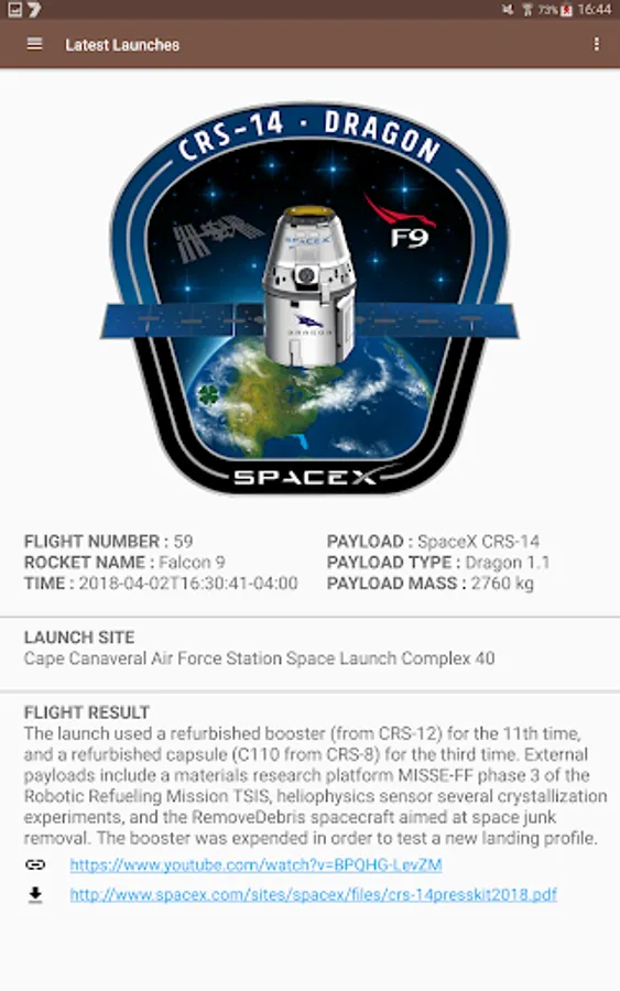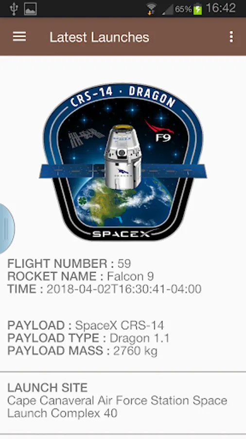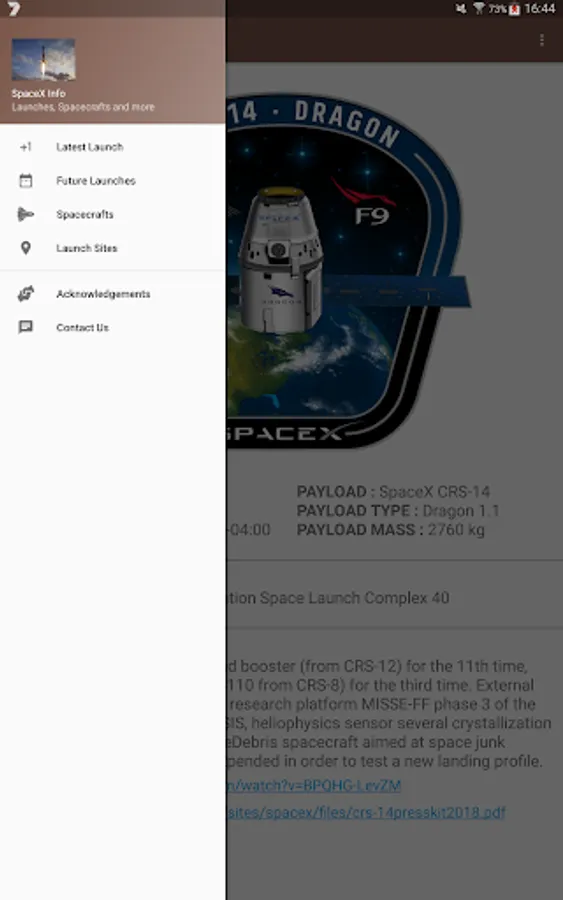 SpaceX Info supports both phones and tablets but is best viewed on a tablet.