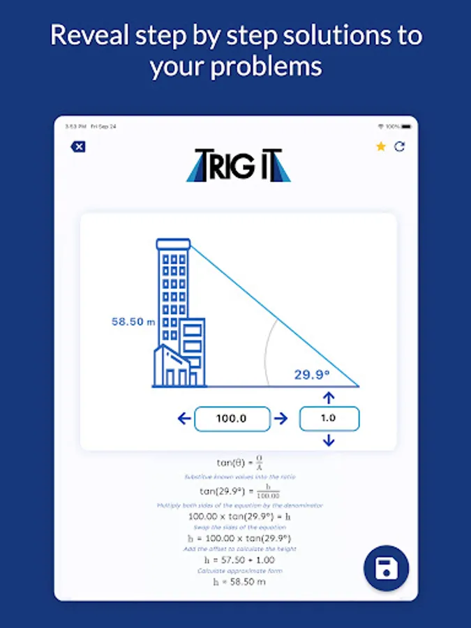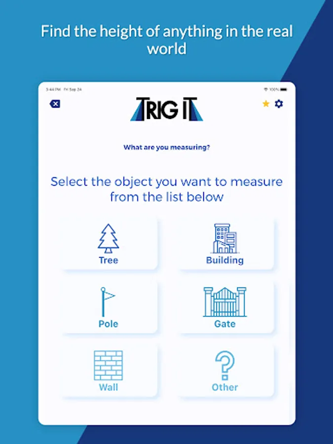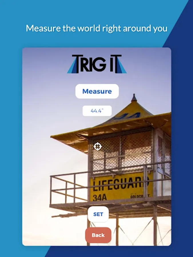 Do you want to make your Mathematics lessons more meaningful? TrigIt allows you to take your students outside of the classroom and apply the mathematics they have learnt to real life scenarios. Measure angles and use trigonometry to calculate the height of different structures around your school or workplace.