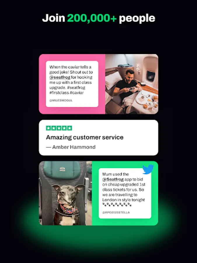 - "Living it up in first class this morning up to Durham thanks to @Seatfrog" - @cassandra_gw