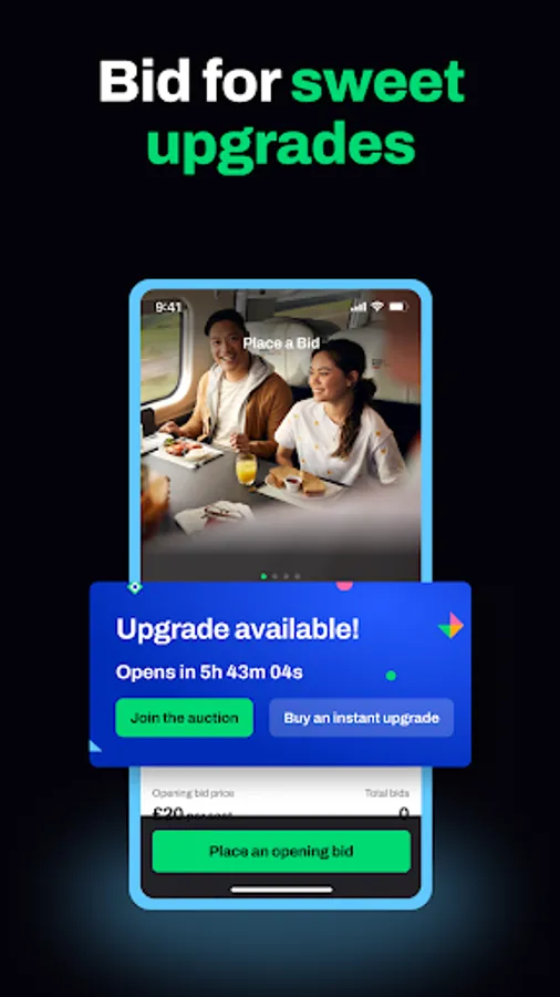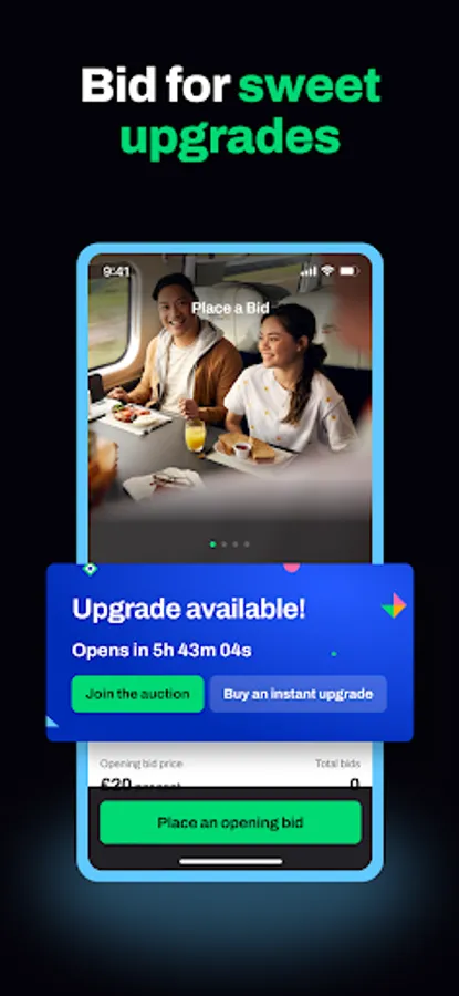 Oh, and if you think you have to have a **fat wallet/be a big spender** to travel First Class (darling), think again. You can upgrade from a standard seat for as little as £10 by entering our daily auctions. Place your bid, and if you win, we'll put you in a lavish seat with extra room and all of the luxuries that come with it. Lovely.