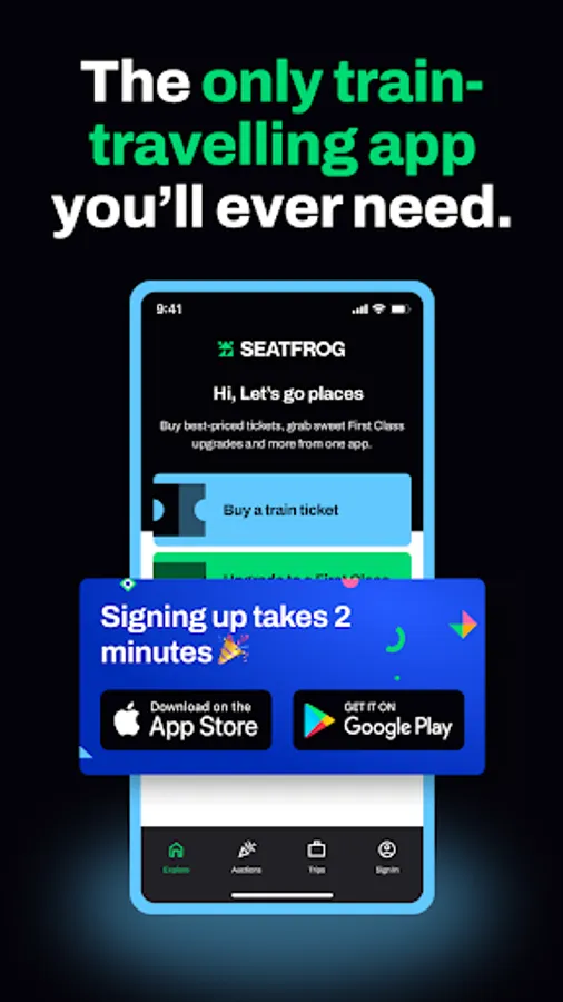 Download the Seatfrog app and leap into a world of flexible, first-class train travel. As a Seatfrogger, you can book train tickets to thousands of destinations across the UK and swap your journey on the day, without delay. You don’t have to miss out on life’s best moments anymore.