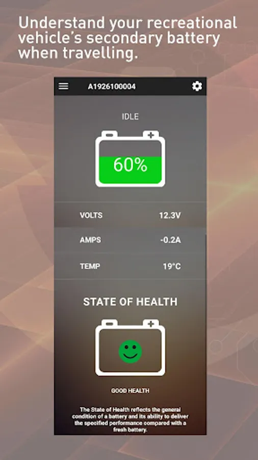 Really understand your recreational vehicle’s secondary battery when travelling. It is easy with BatteryCheck.