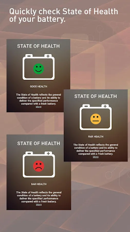 The BatteryCheckApp is compatible with mobile phones operating on Apple iOS10 or greater and Android™ 4.4 or greater.