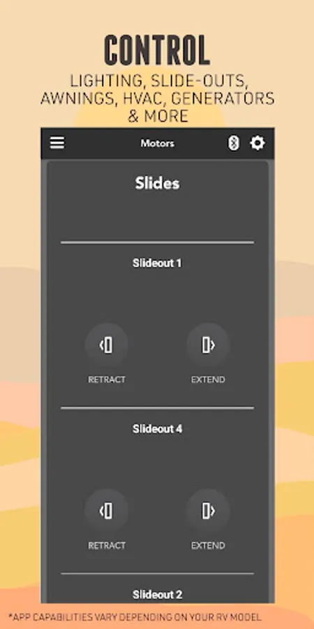 • Control - lighting, slide-outs, awnings, HVAC, generators and more