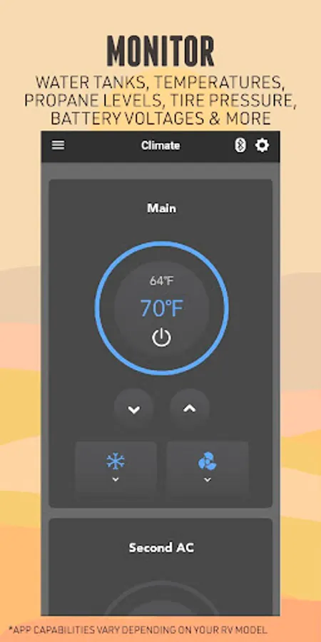BMPRO Connect powered by BMPRO is an RV control and monitoring system for easy management of RV features via an app on your own device. It is specifically designed to work with the North American RVs – check your RV specifications to ensure your vehicle is compatible with this app.