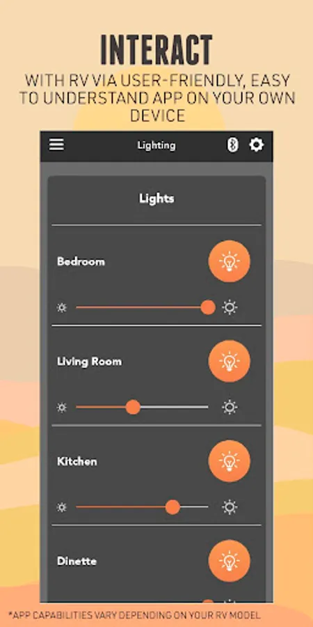 • Interact with RV via user-friendly, easy to understand app on your own device