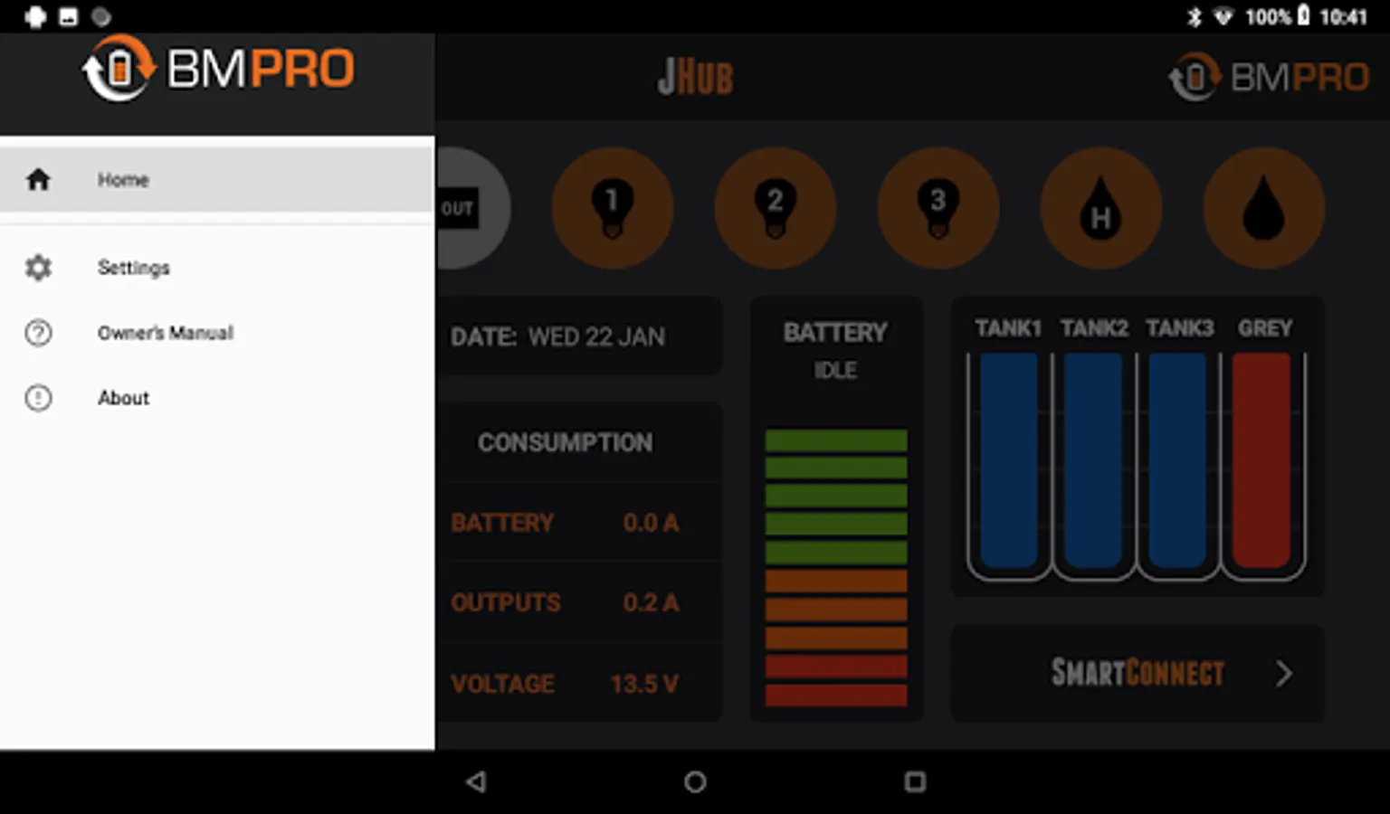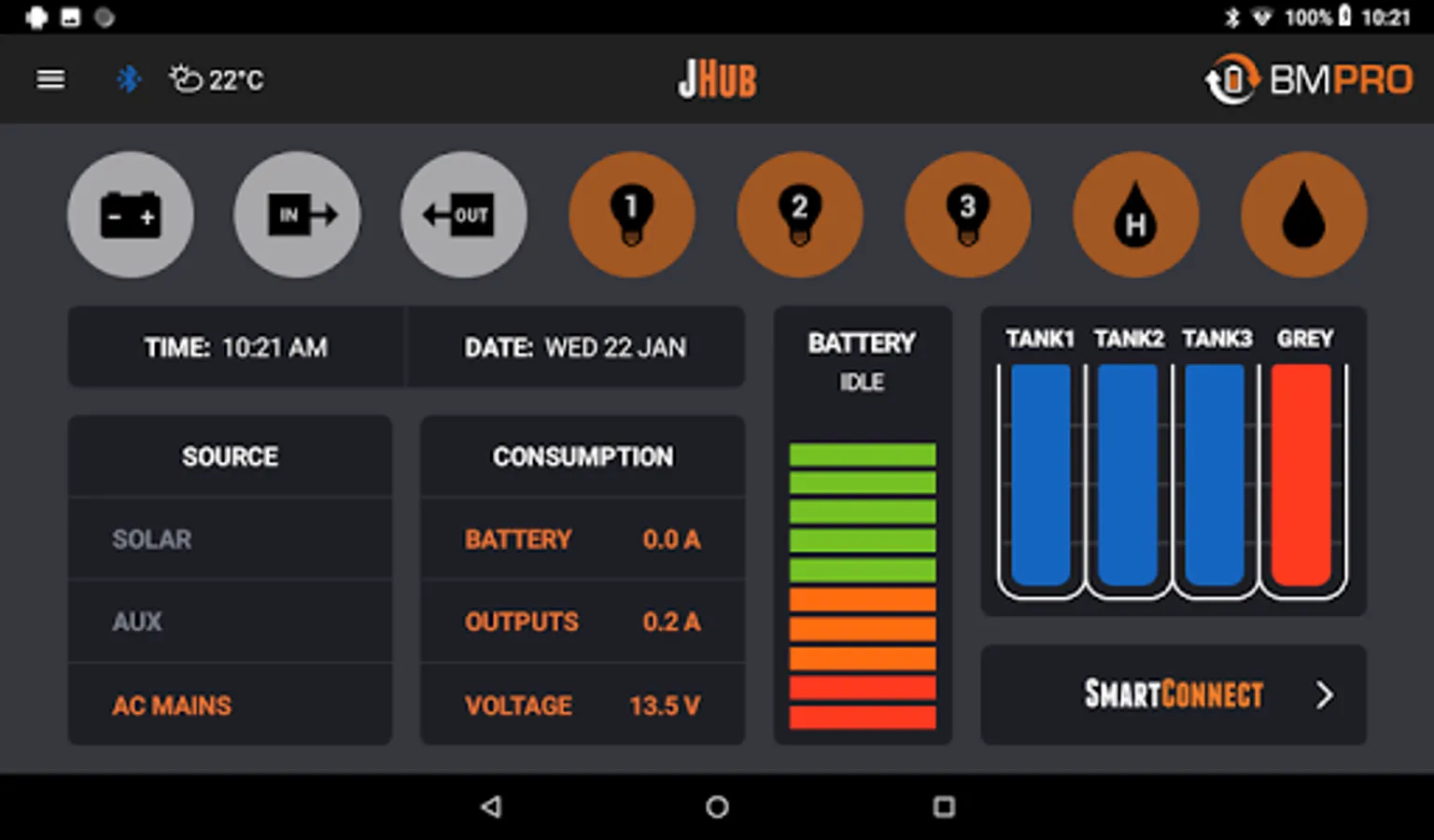JHub system powered by BMPRO allows you to control your Jayco caravan’s battery and onboard features.