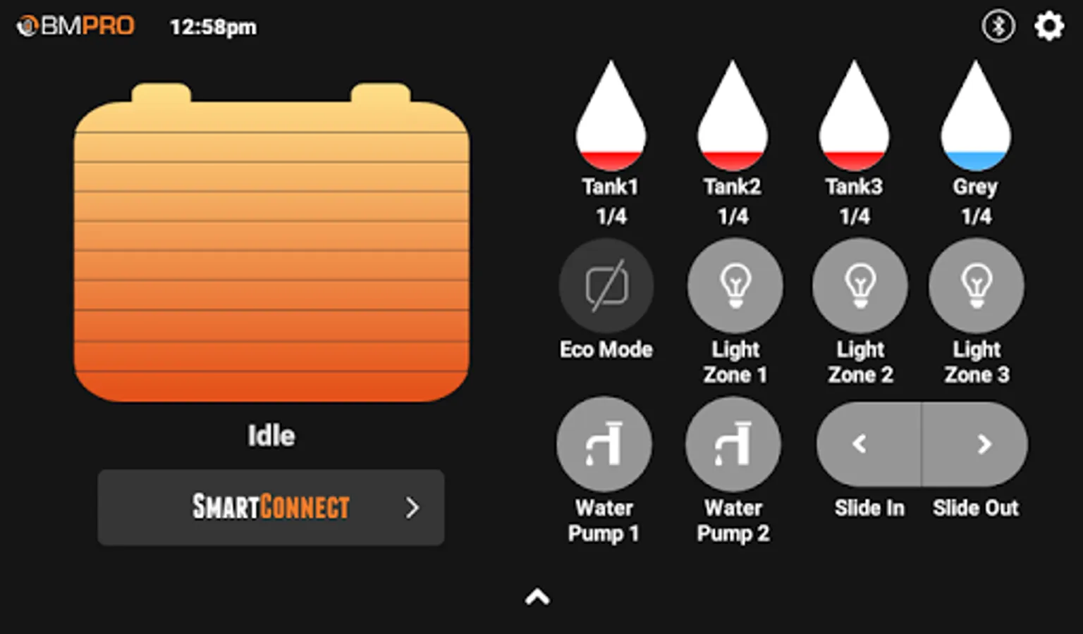 - Gives you the freedom to operate onboard features including lights, slide-out and water tanks, all from the sleek built-in monitor.