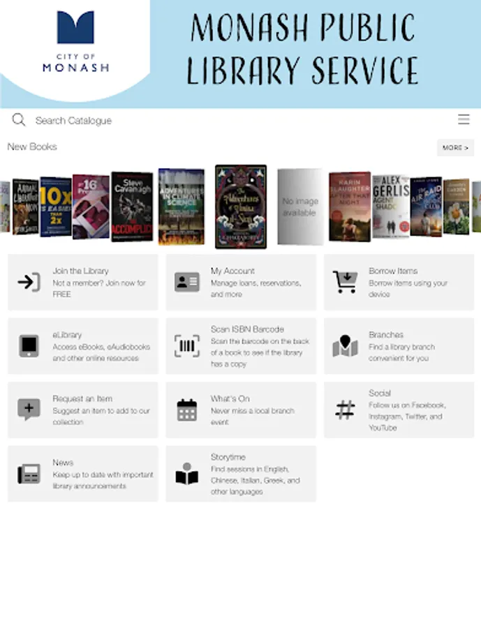 Access Monash Public Library Service from your Android phone or tablet. Manage your account, search the catalogue, renew and reserve books.