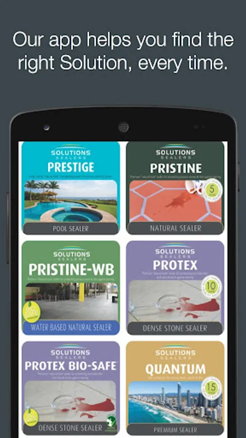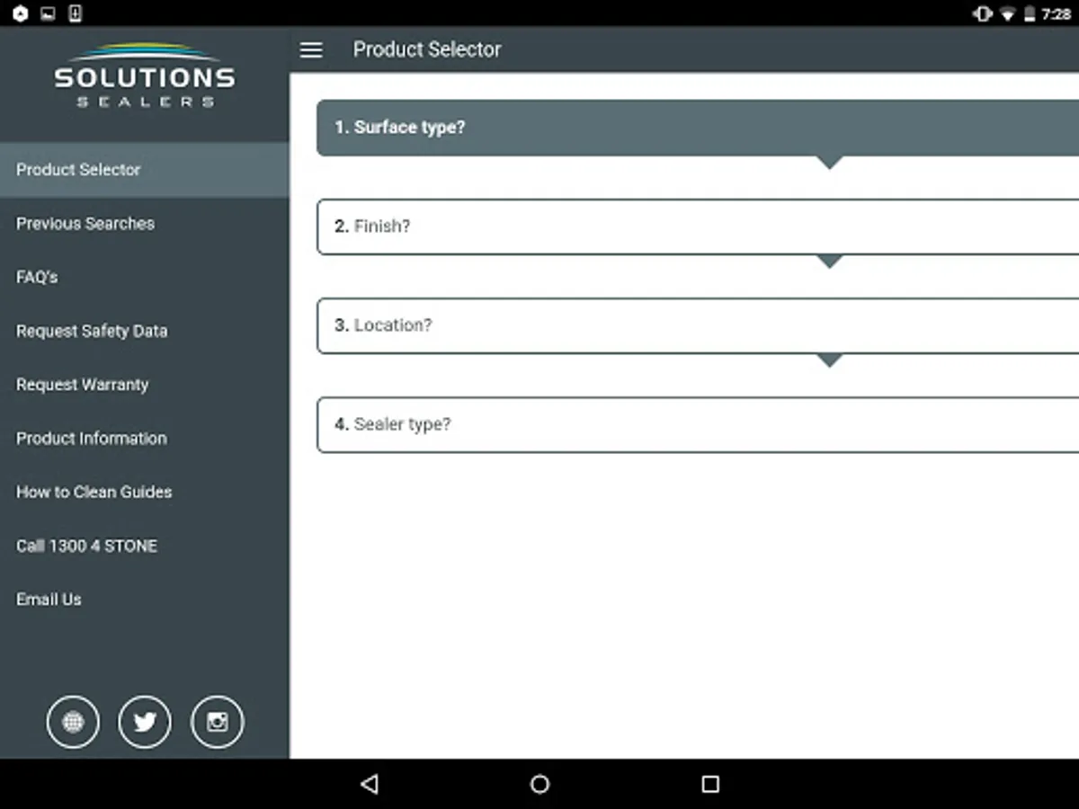 SOLUTIONS – Sealers for Stone & Tile Product selector app is a comprehensive selection tool which makes finding the right sealing solution easy.