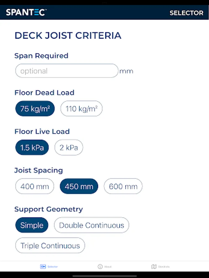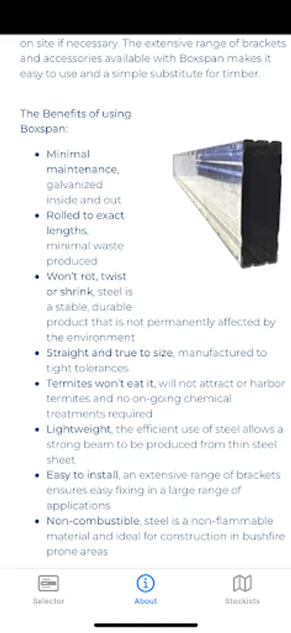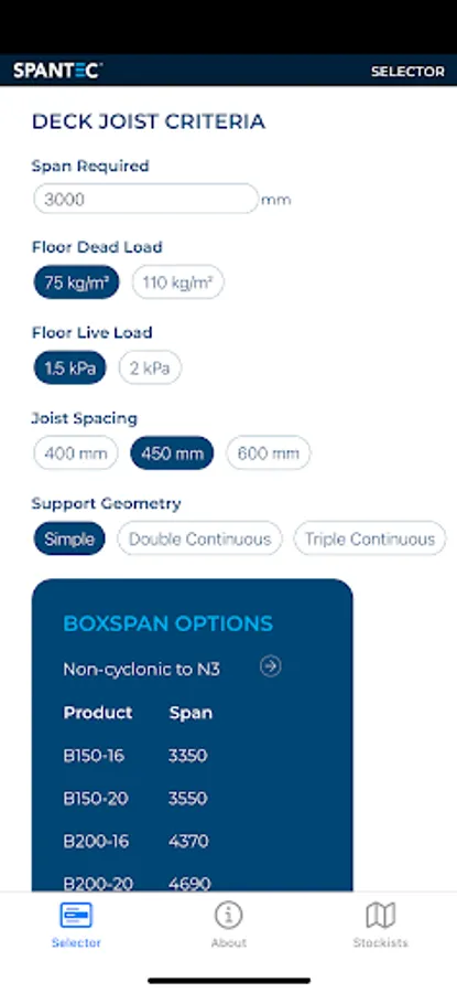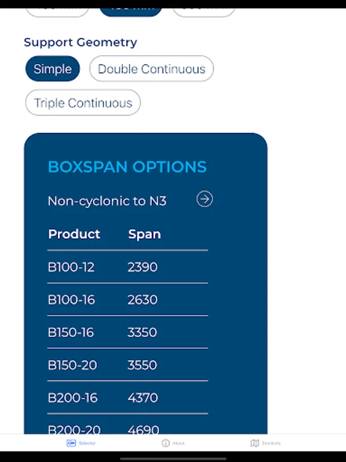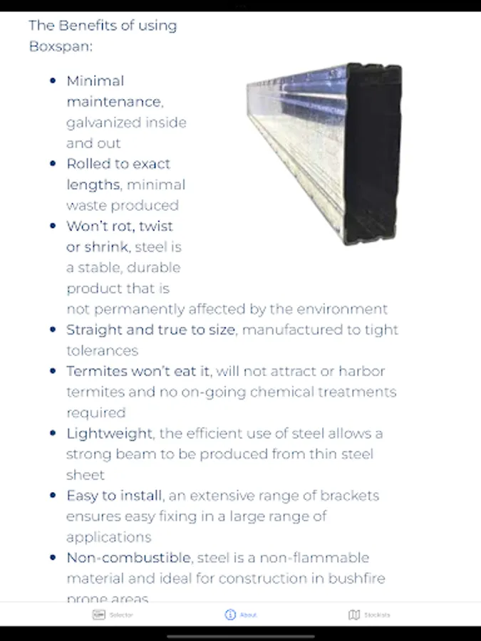 The Boxspan App simplifies the process of beam selection, by entering in specific details of your project, the Boxspan App will provide a selection of suitable sizes based around your project requirements from our built in certified design guide.