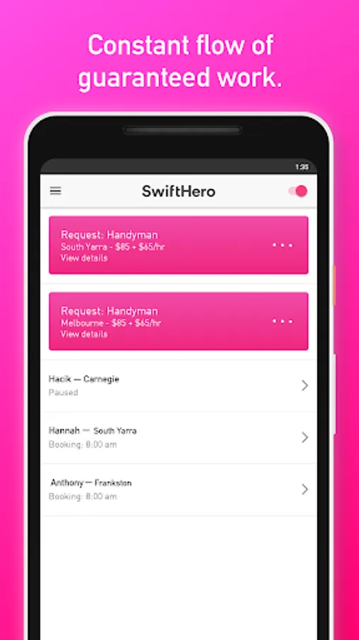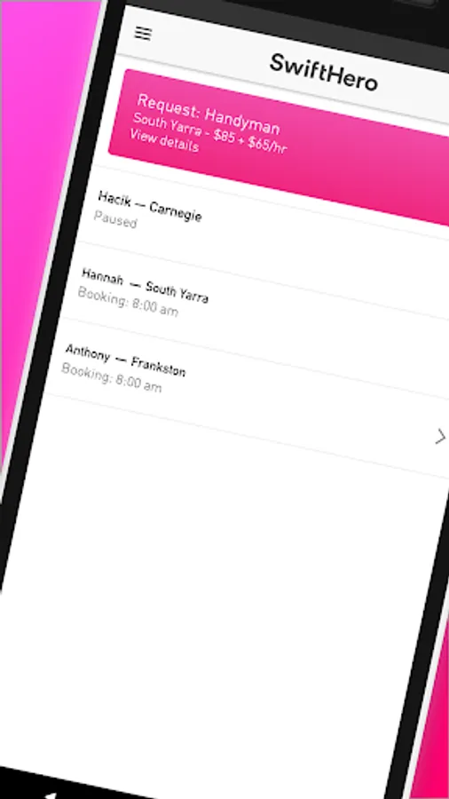 - SwiftHero hands you jobs in your area when you want them. If you are too busy, no problems; simply reject the job and we'll pass it on to the next tradesperson.