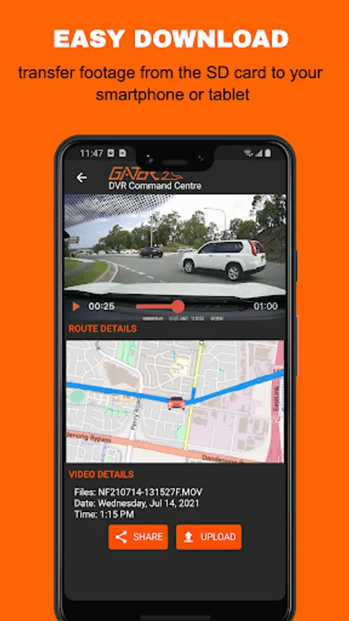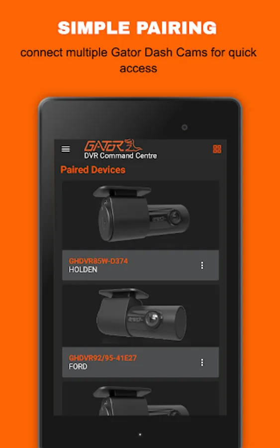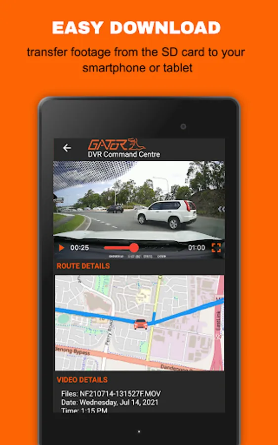 The Gator Dash Cam App works in conjunction with Gator Dash Cam Devices providing a simple & convenient way to configure your camera, and view/download the footage from it.