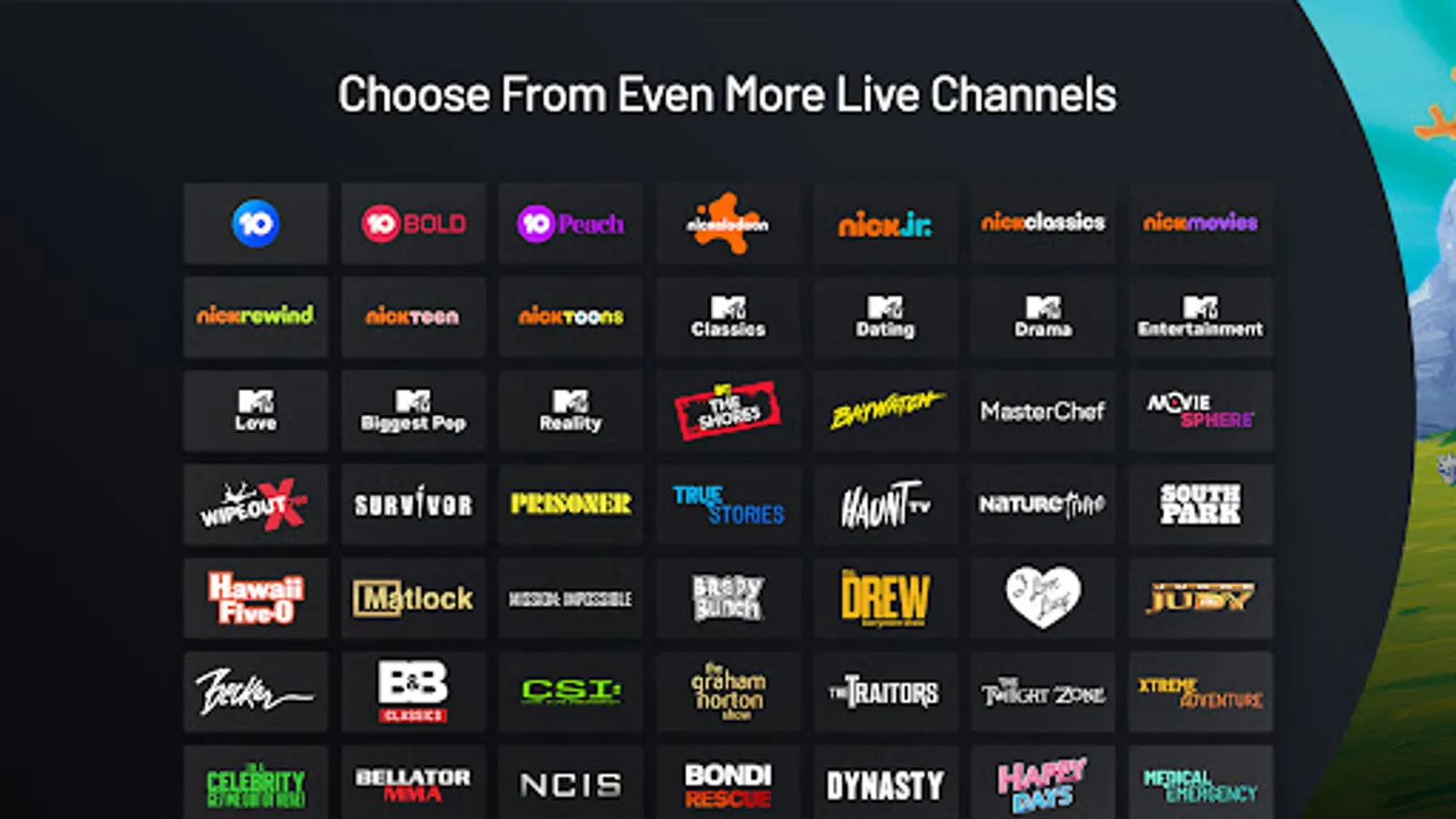Experience 10 Play’s brand-new channels of 24/7 entertainment, including a variety of Nickelodeon and MTV channels, and dedicated channels across reality, comedy, drama, fantasy, crime, action and more; optimised to help you find what you want, when you want it.