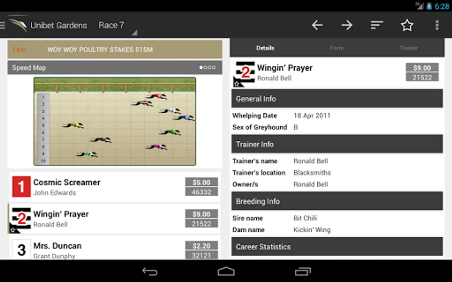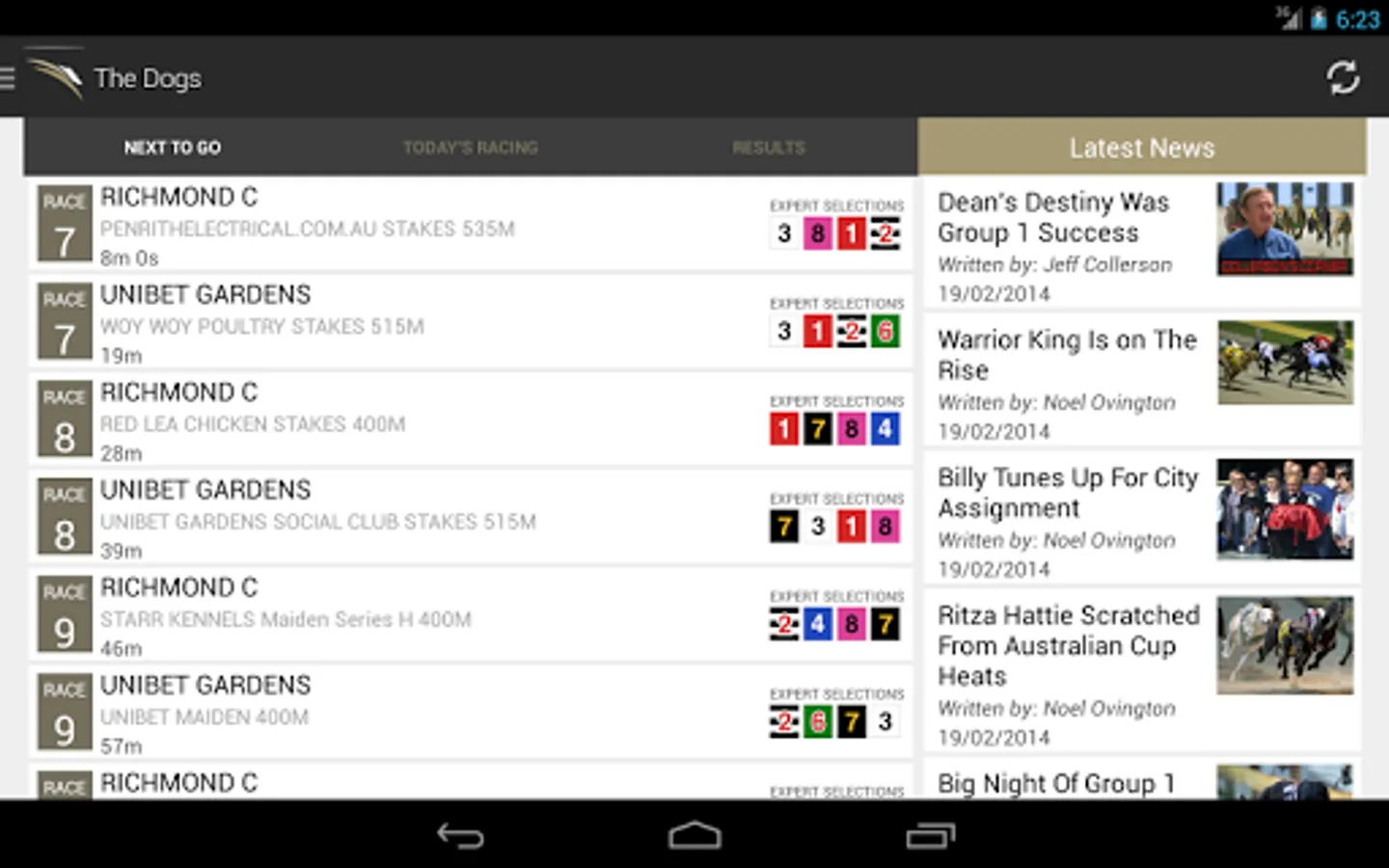 The Dogs Android app puts you on the bunny by bringing you all the latest fields, form, expert selections and results on greyhound races from across Australia.