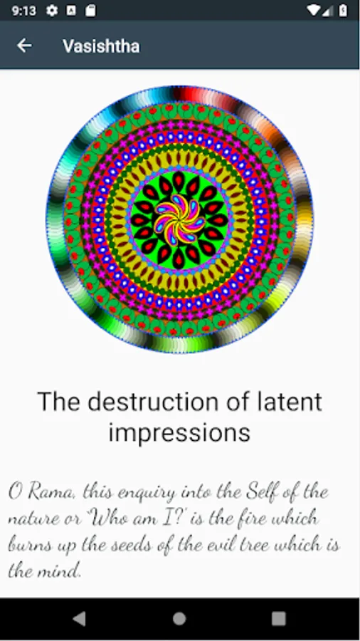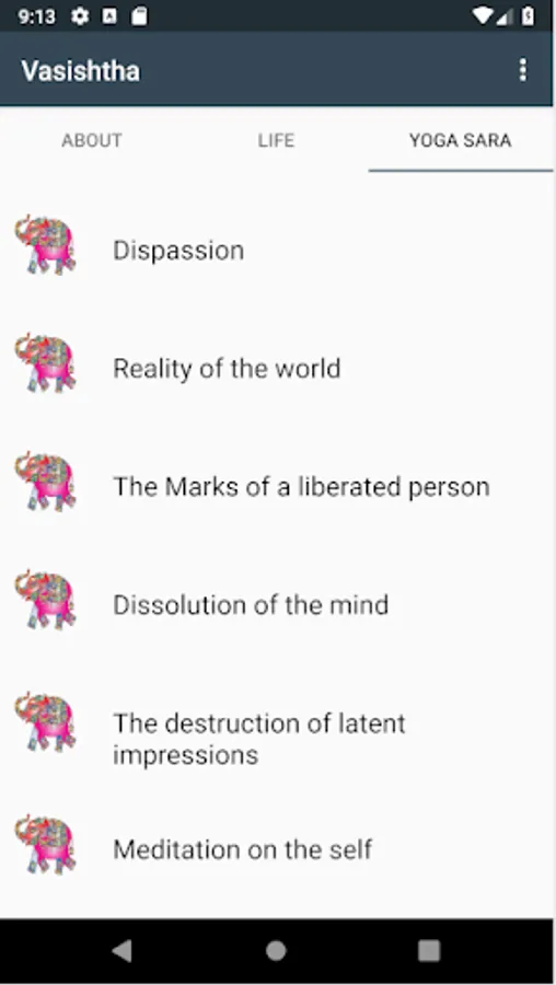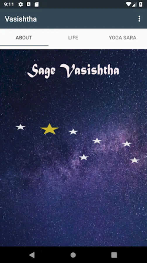 Sage Vasishtha is one of the most respected of ancient Indian Sages. The app provides an insight into the life of Sage Vasishtha, one of the seven sages in the Great Bear constellation, and events surrounding him during his time here on Earth. The app also includes one of the greatest texts ever known to humanity, Yoga Vasishtha Sara, which is a conversation between Lord Rama and Sage Vasishtha.
