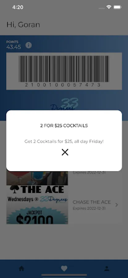 - Scan your barcode with each purchase at the venue to earn loyalty points.