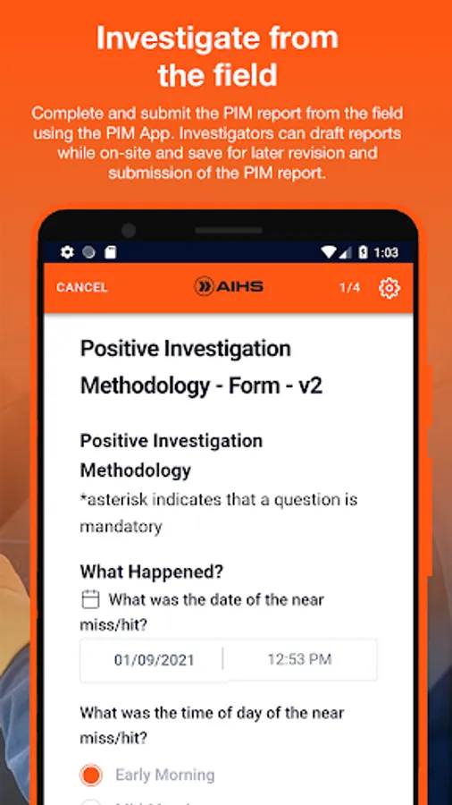 The PIM App can be used on a desktop computer, tablet device or phone. The portability of the PIM App means investigators and users can implement PIM on the ground in the immediate aftermaths of an incident across industries and sectors. The PIM App enables investigators to draft reports while on-site and enables later revision and submission of the PIM report for review and approval.