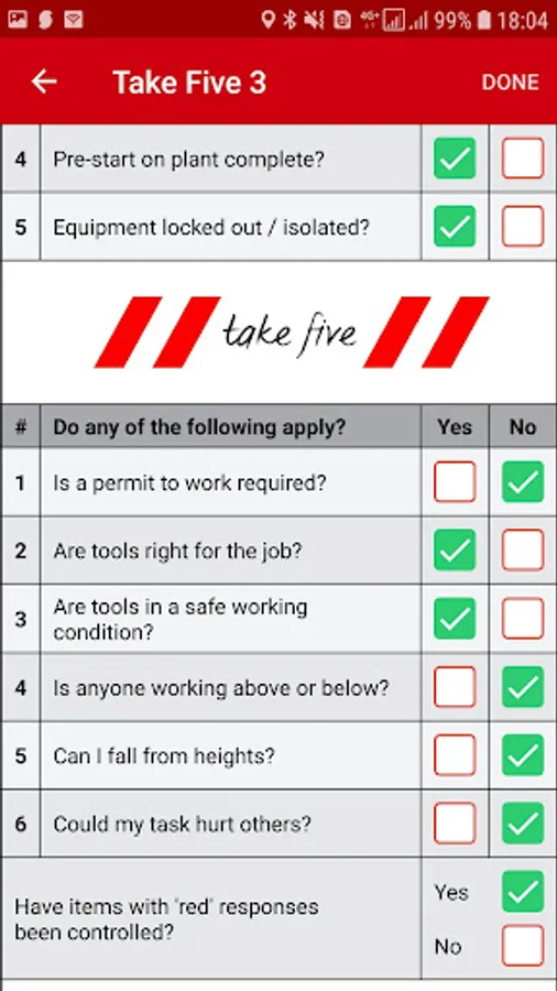 Seamless downloading/updating of new ‘take five’ forms published in the dashboard app.