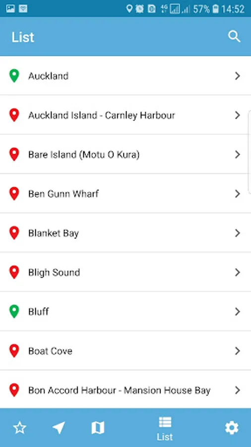 New Zealand Tides shows tide times, tide heights, first/last light times, sunrise/sunset times, and moon phases for over 200 locations across New Zealand including Auckland, Bluff, Dunedin, Gisborne, Lyttelton, Marsden Point, Napier, Nelson, Onehunga, Picton, Port Chalmers, Port Taranaki, Tauranga, Timaru, Wellington, and Westport.