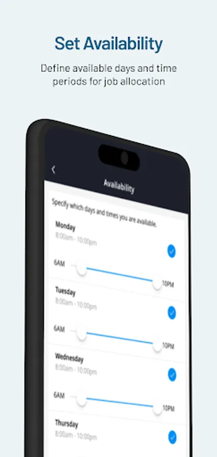 Scheduling: Your calendar, your control. Manage your schedule and availability directly in the app, aligning your work commitments with your personal life effectively.