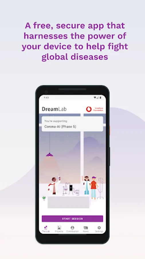 * A compatible handset is required. Downloading DreamLab will consume data. Once downloaded, DreamLab can be used when your device (i) is connected to a charging source and (ii) has mobile network or WiFi connectivity. Mobile data to use DreamLab is free for Vodafone customers on their local Vodafone network. Roaming incurs international rates.
