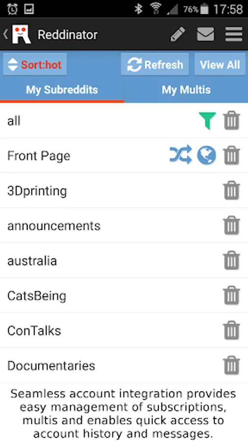 • Search & subscribe to new Subreddits & unsubscribe from the stale ones