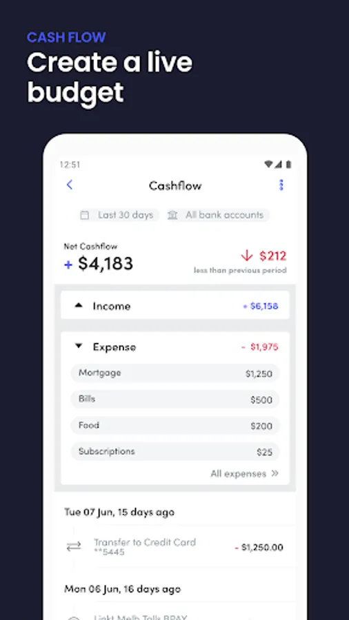 — Create a Live-Budget and stay on top of your cash flow with auto-categorised transactions and monthly budget reports