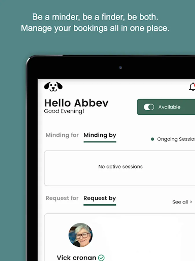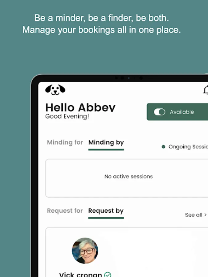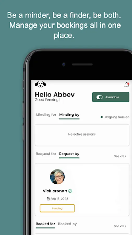 You decide your price, and your availability and you get to hang out with beautiful dogs. Booking fees are not charged, and arrangements are left to the discretion of the minders and finders through our in-app chat or calls.