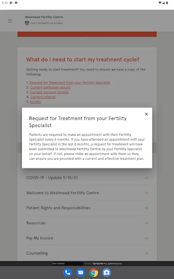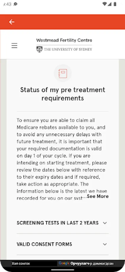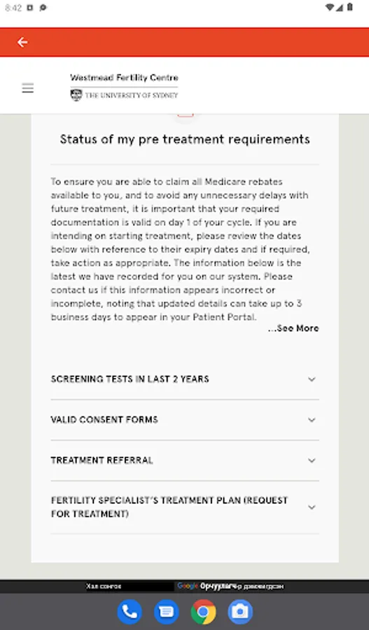 - Review and update the status of your personal pre-treatment requirements.