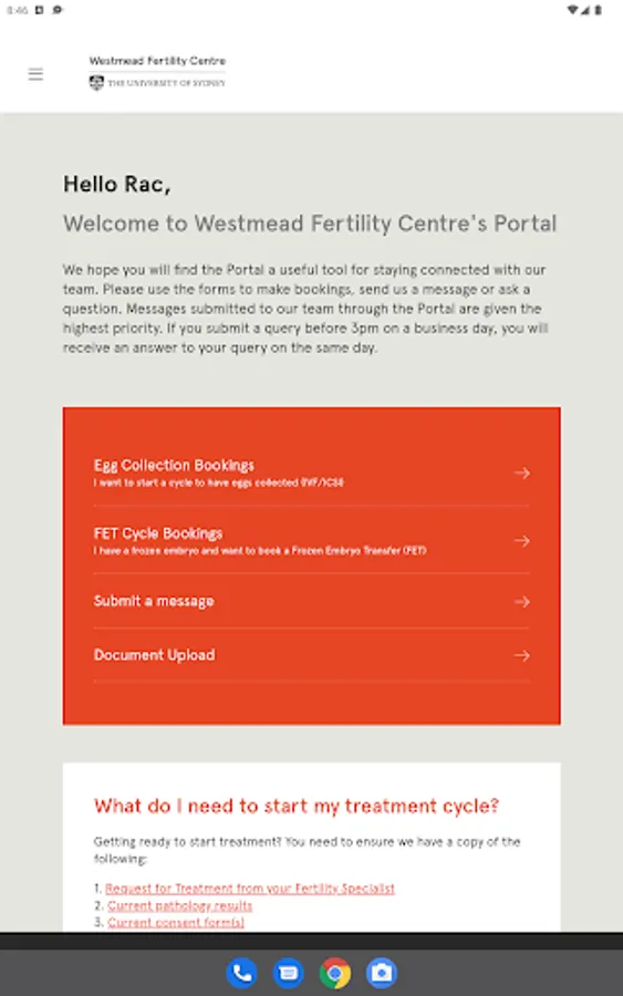 Once registered as a patient of WFC, you may use your unique registration details and access your Patient Portal to:
