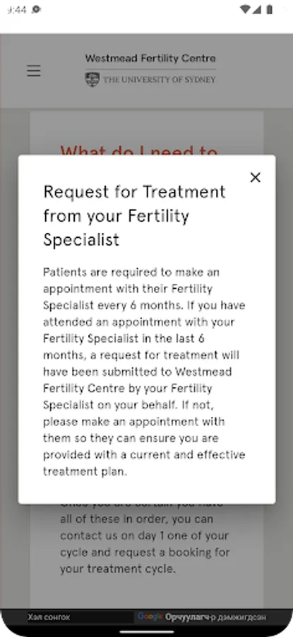 - Advise WFC that you are ready to a start treatment cycle