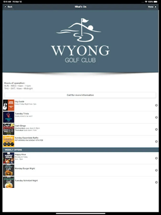 The Wyong Golf App keeps all its Members and Guests up-to-date on: