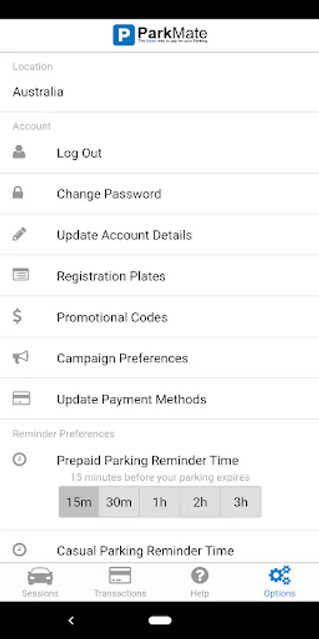 Once you have easily registered your ParkMate account, ParkMate (AU) provides you with the best parking rate available including the Earlybird rate (if available). ParkMate (AU) also allows you to select how often you would like reminders that your parking session is active or when you would like to be reminded that your Earlybird parking is ending (if you want to extend your stay, you can without needing to return to your car!). For 'peace-of-mind' ParkMate (AU) displays a timer on your phone, so you can always see your parking session is active and how long you have parked for.