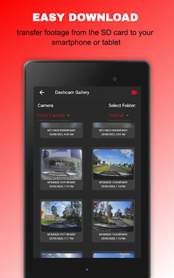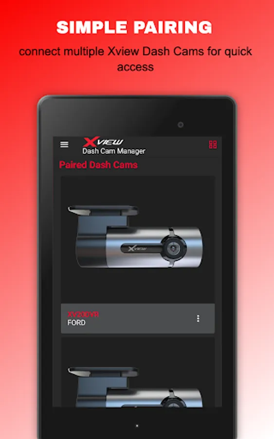 The Xview Dash Cam App works in conjunction with Xview Dash Cams. It provides a simple & convenient way to configure your camera, view recorded footage and download the footage to your smartphone.