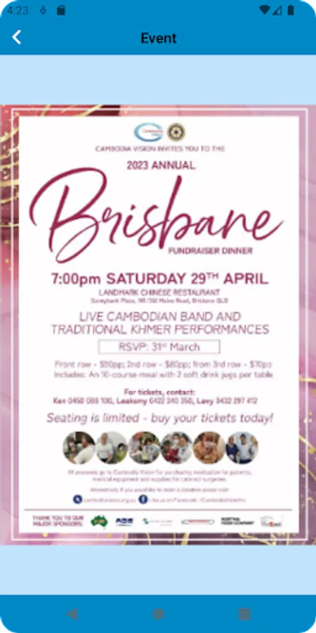 The new Cambodia Vision app is here now! Cambodia Vision aims to streamline the selling of the fund raising events which are done every year, starting in Brisbane, then Sydney, Melbourne, and then Adelaide. This non-profit organisation is established to treat and prevent blindness, providing medical services in regional Cambodia.