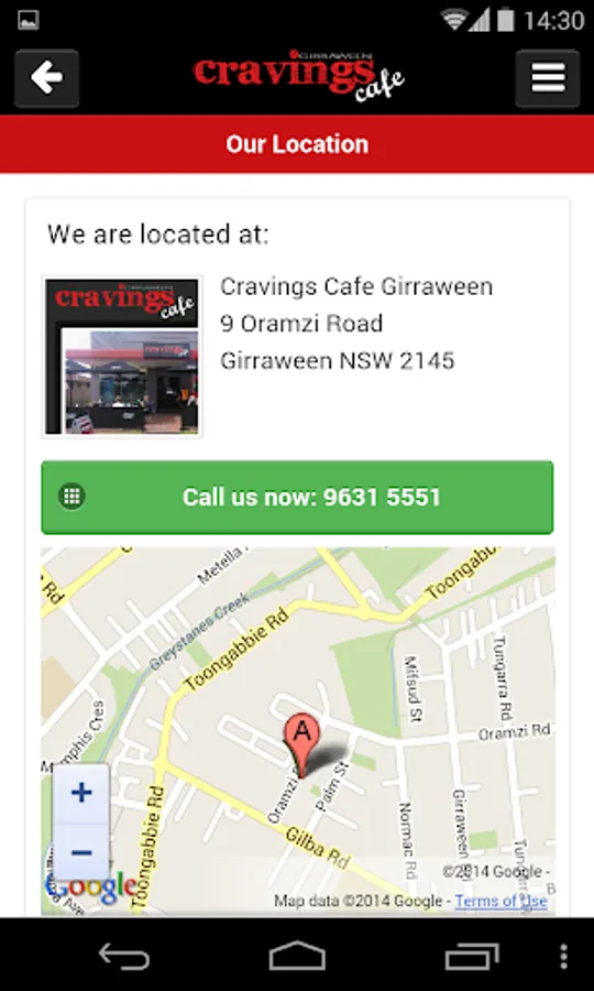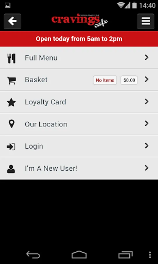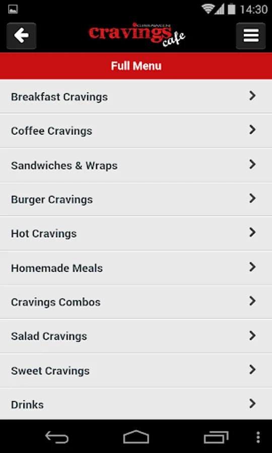 Cravings Cafe's Android app makes takeaway ordering fast and convenient.