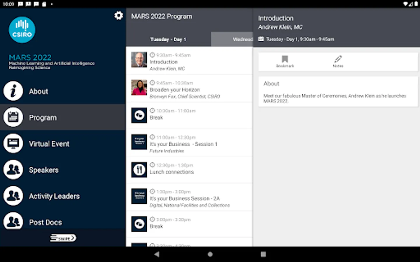 - Access full event schedule, bookmark sessions and take notes
