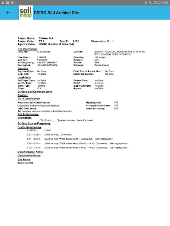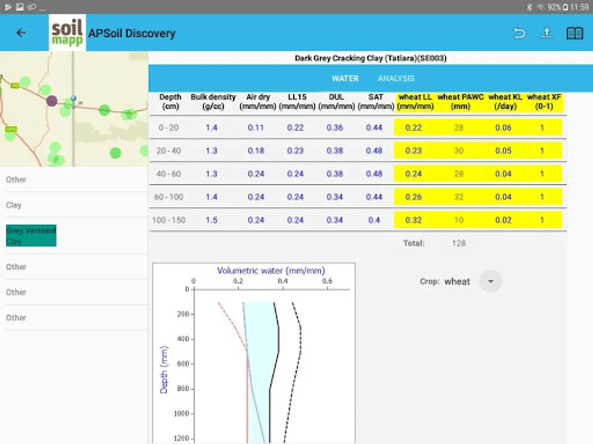 Users can pan and zoom the map and tap to locate a place of interest, or use the mobile GPS function to identify their current location. SoilMapp returns data and information about the likely soils at the defined location. This includes maps, photographs, satellite images, tables and graphs of data about soil attributes such asclay and organic carbon contents or pH. Data for specific described sites and samples held within the CSIRO National Soil Archive can also be accessed where available. APSoil sites provide details regarding soil water holding characteristics and other attributes essential for farming systems modelling.