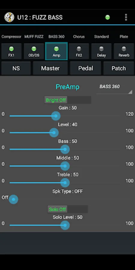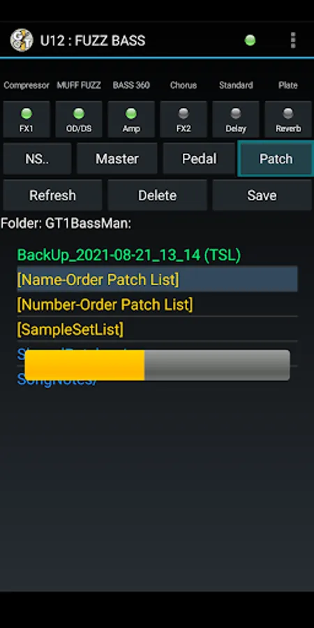 You can save the current tone as a named patch on your phone or tablet. Patches can subsequently be re-loaded to your GT-1B simply by tapping on the patch file. The number of patches that can be stored is limited only by the available storage on your Android device.