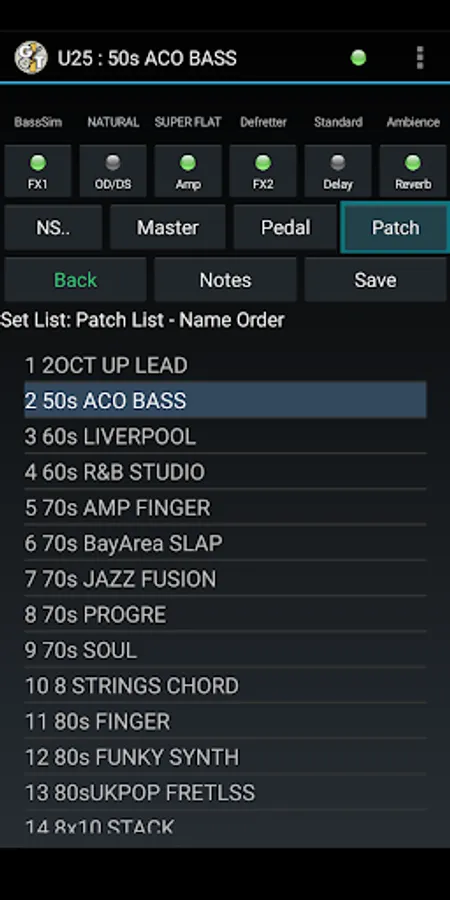 SetLists of songs, in order of performance, can be created - with each song ‘linked’ to the associated patch. As each song title in the list is tapped the corresponding patch is loaded into the GT-1B. Great for live performances.