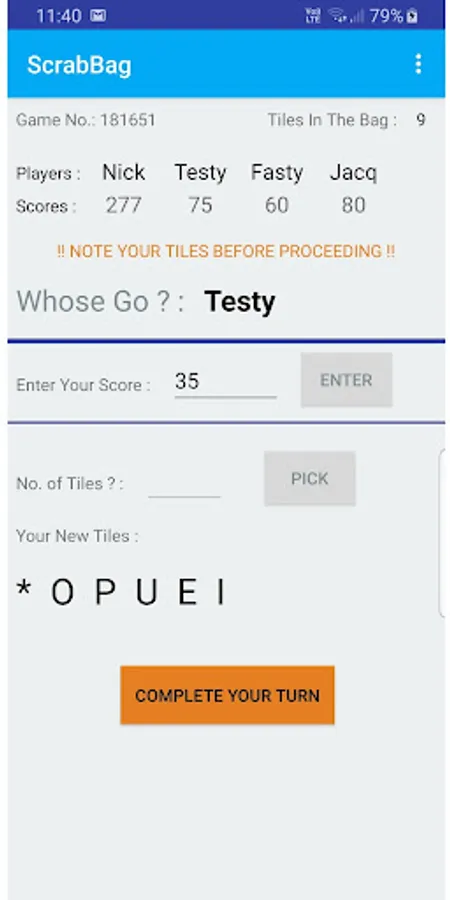 - ScrabBag keeps track of which letters are drawn and keeps the virtual 'bag' up to date