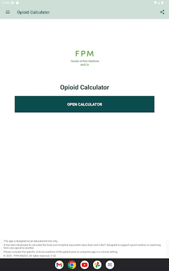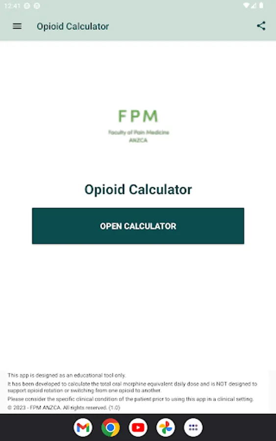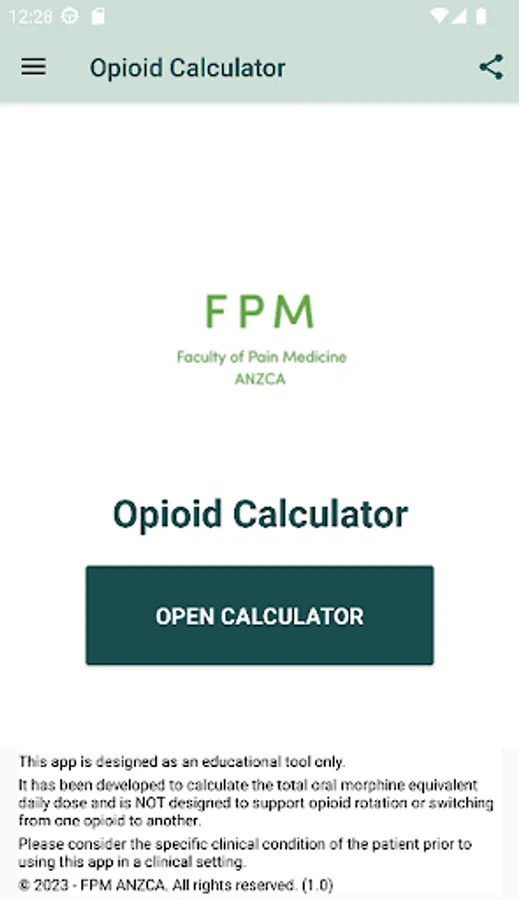 Developed by the Faculty of Pain Medicine, Australian and New Zealand College of Anaesthetists (FPM ANZCA), this opioid equianalgesic calculator is an essential clinical tool simplifying the calculation of equianalgesia expressed as total oral morphine equivalent daily dose (oMEDD)