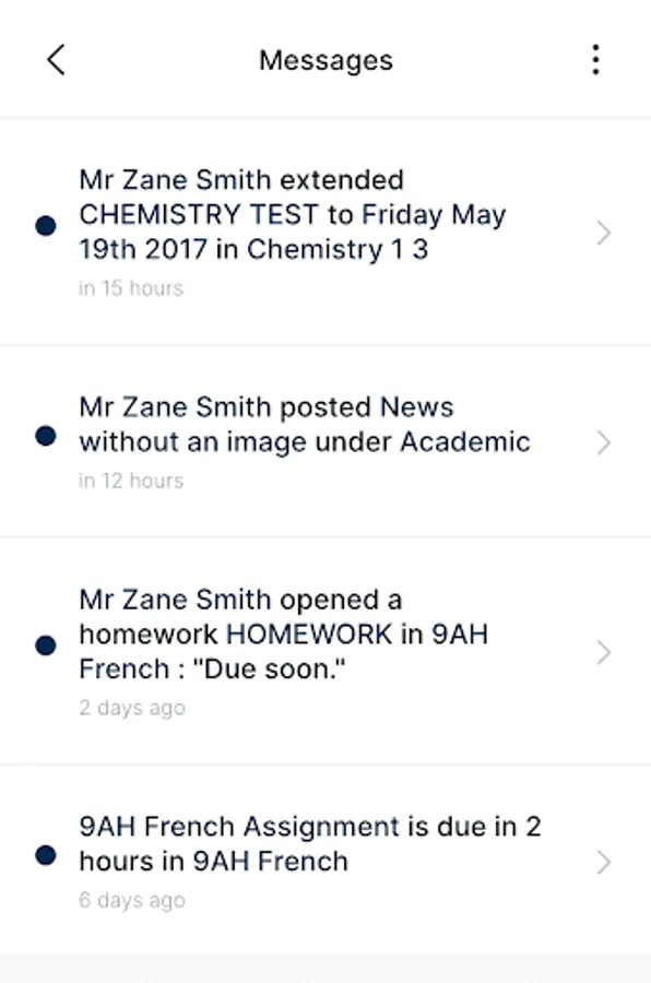 Messages: messages allow parents, teachers and students to communicate personally, in groups or to receive targeted communications from Queensland Academy for Health Sciences