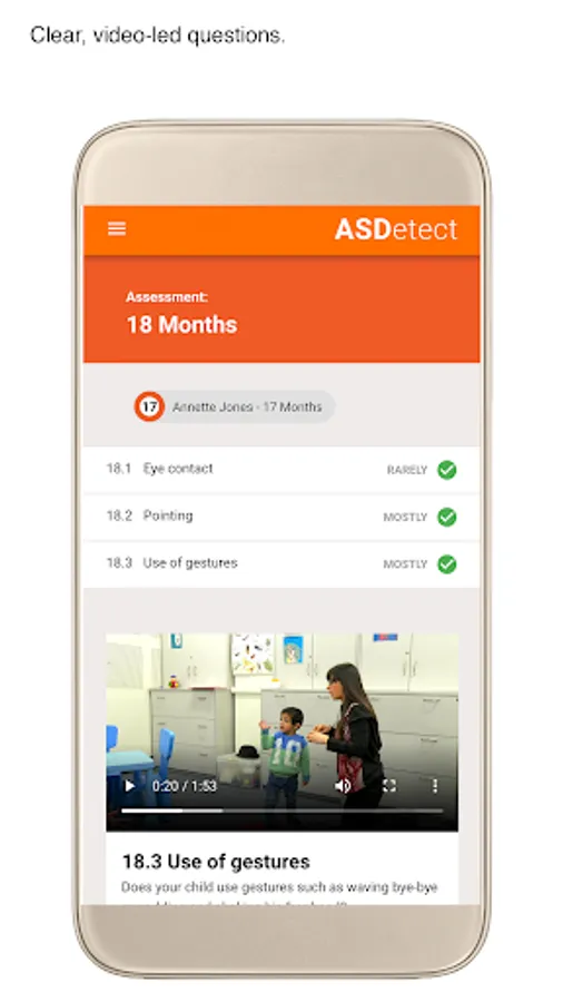 With actual clinical videos of children with and without autism, each question focuses on a specific ‘social communication’ behaviour, for example, pointing, social smiling.