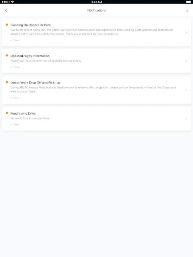 Notices: the Notices module provides Lutheran Primary School Wagga Wagga with the ability to keep their community informed with important information, with push notifications for urgent school notices